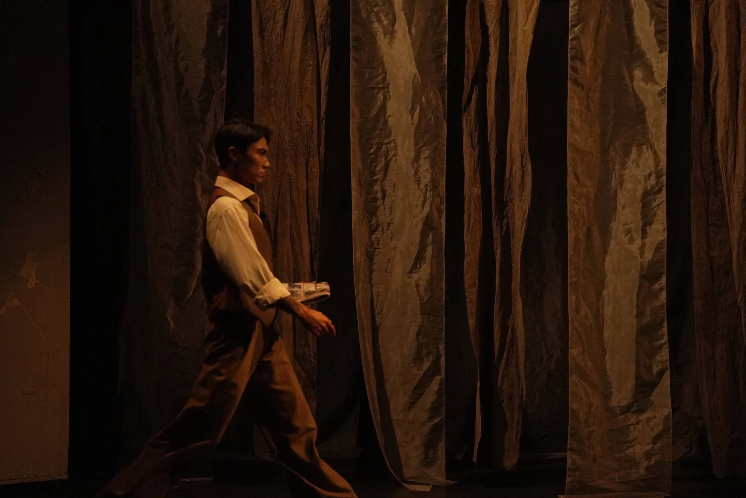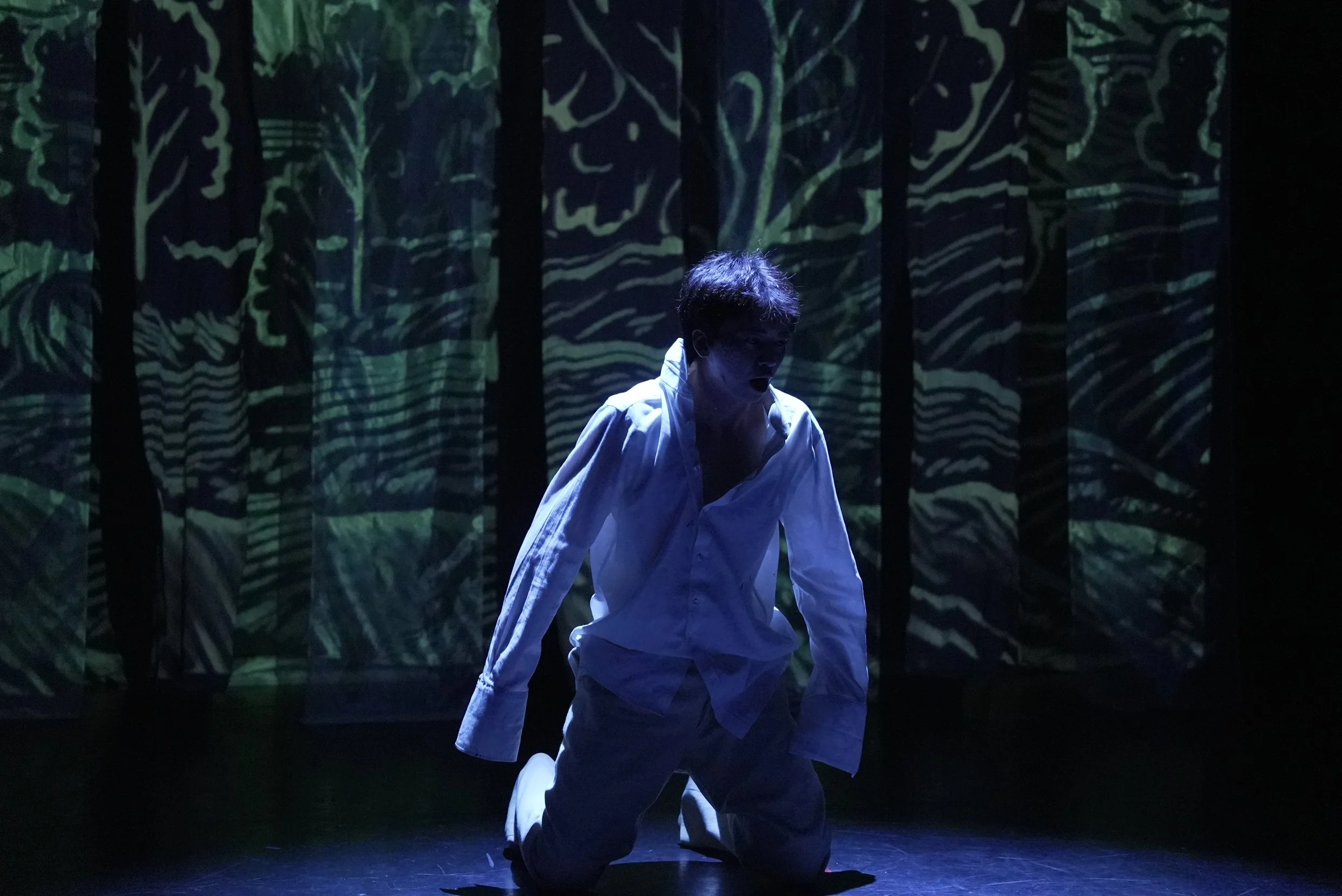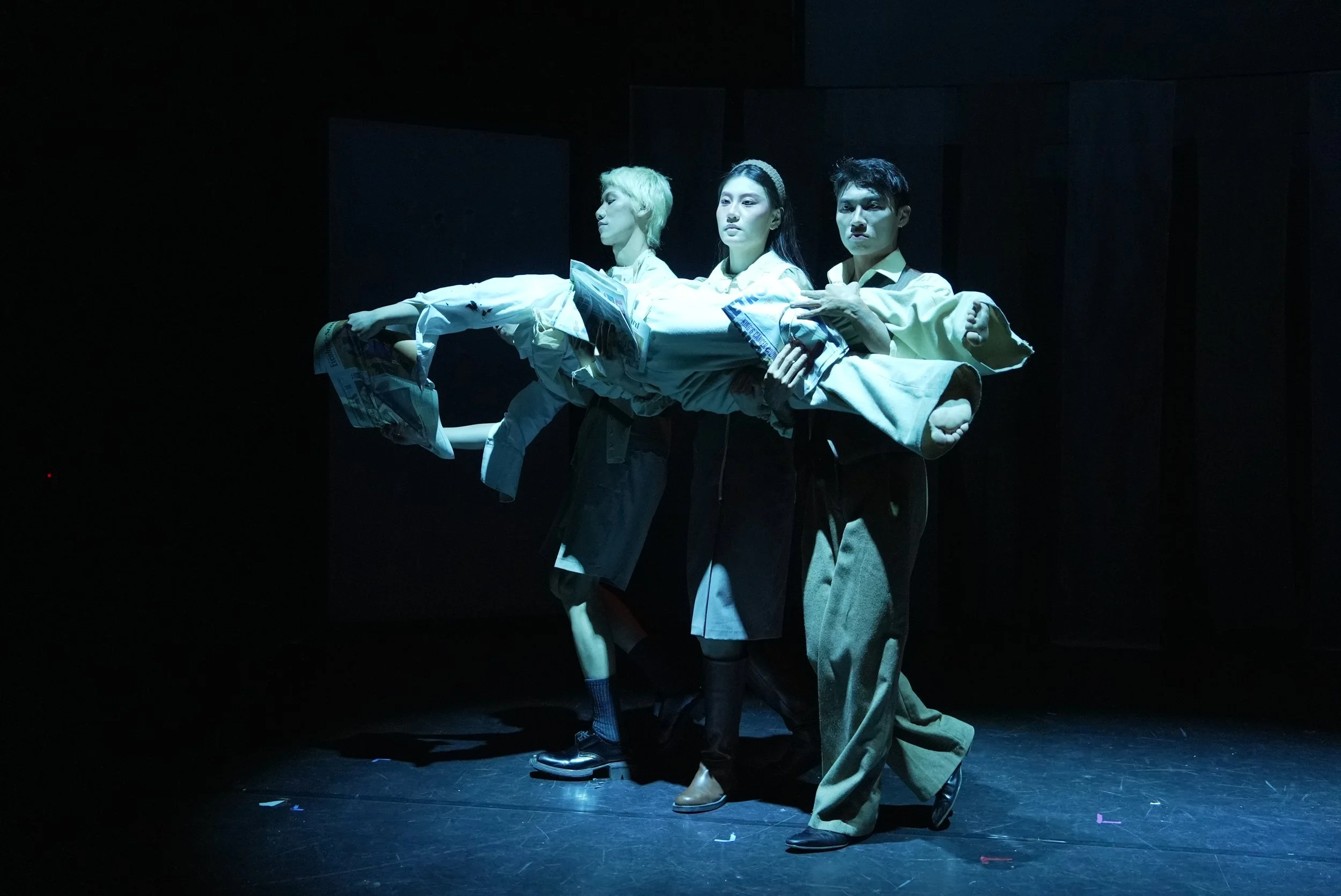 Multimedia layers sound, image, and presence, expanding theatre’s sensory environment while revealing its limitations. Visual projections, installations, and live actions are not mere decoration—they actively engage audiences, highlighting interactions between body, space, and technology. Movements and gestures are fluid and unpredictable, avoiding fixed postures. Trajectories begin at audience peripheries and activate the entire space, making identity, action, and space interwoven and perceptible as layered, immersive phenomena.