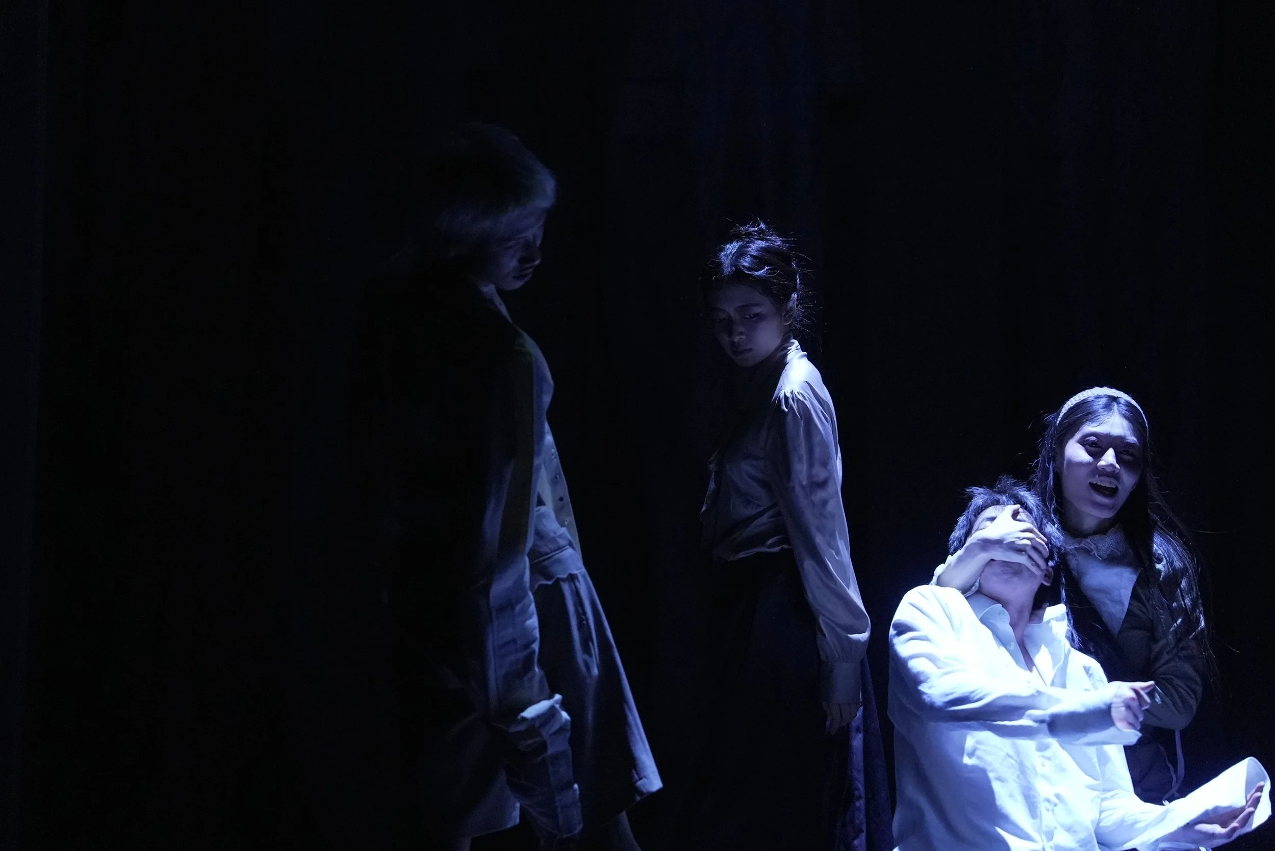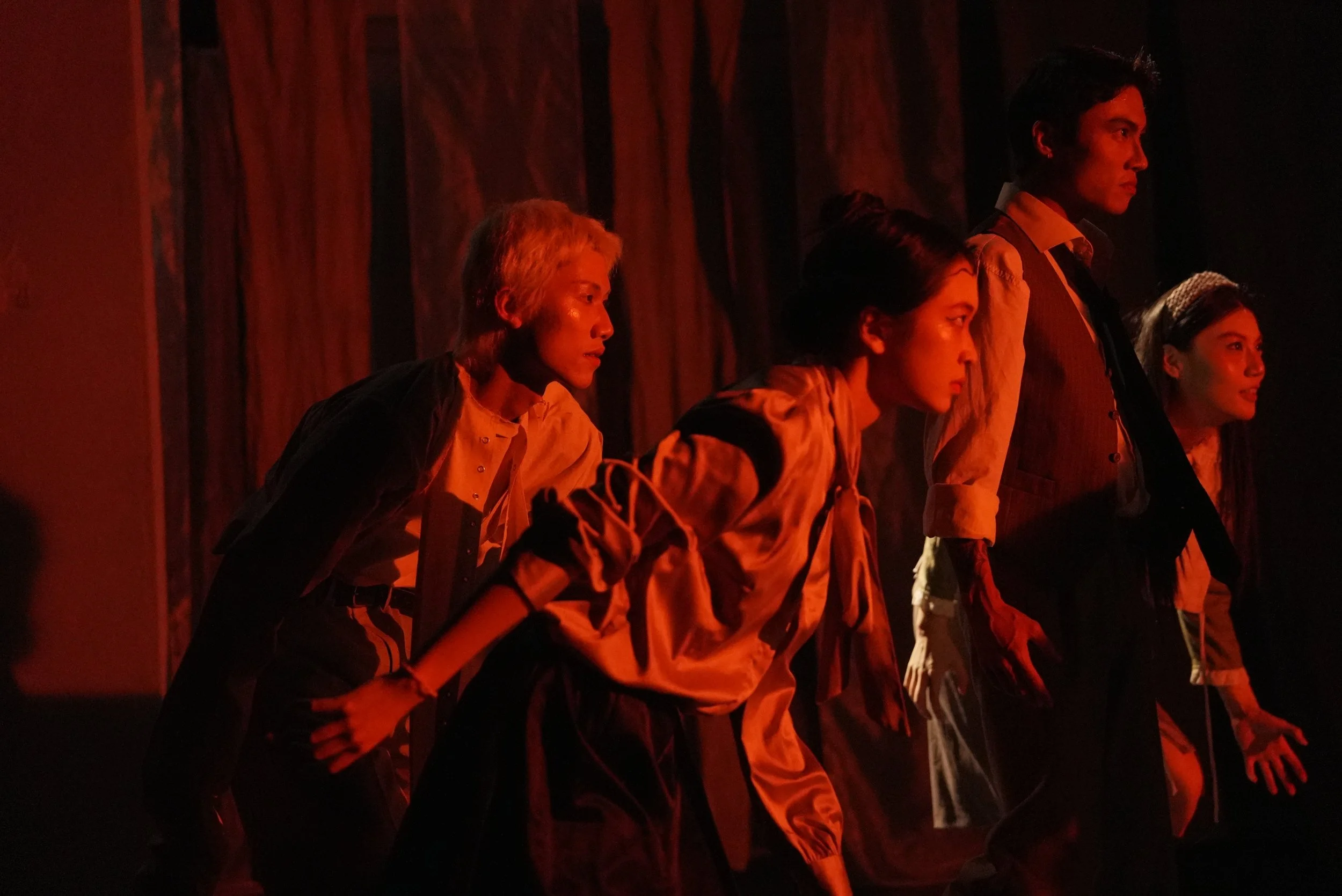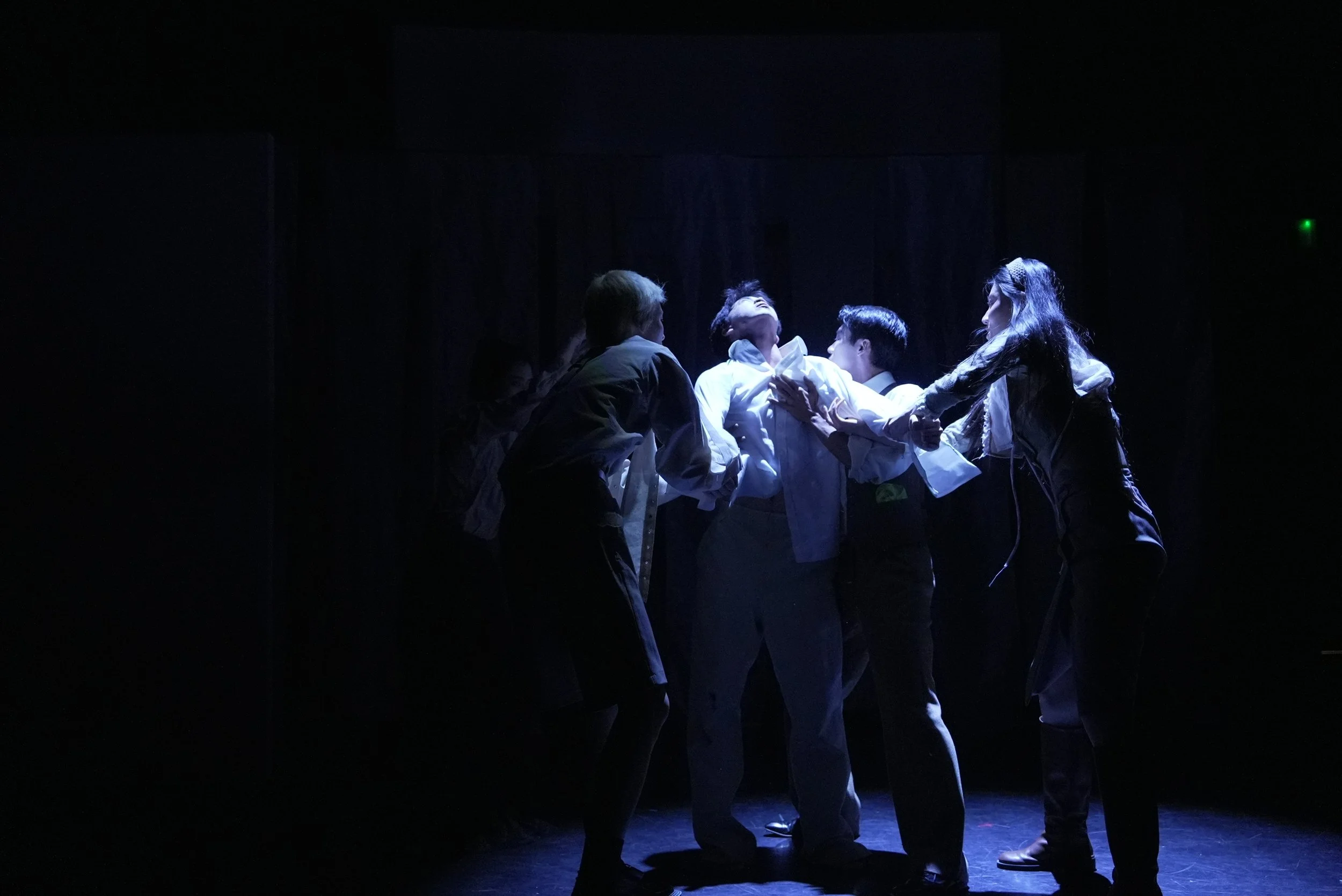 Multimedia layers sound, image, and presence, expanding theatre’s sensory environment while revealing its limitations. Visual projections, installations, and live actions are not mere decoration—they actively engage audiences, highlighting interactions between body, space, and technology. Movements and gestures are fluid and unpredictable, avoiding fixed postures. Trajectories begin at audience peripheries and activate the entire space, making identity, action, and space interwoven and perceptible as layered, immersive phenomena.