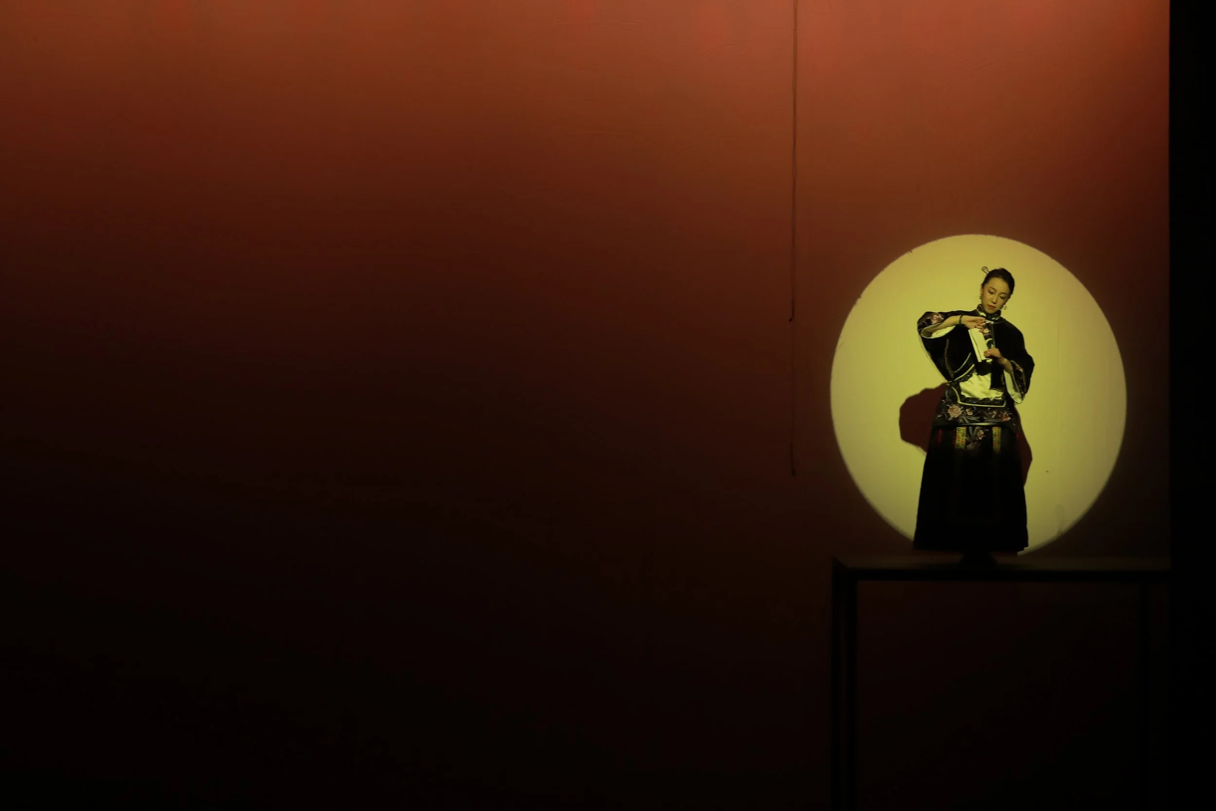 Light becomes a central image seed in this process. It functions not only as illumination but as a catalyst for psychological space. Changes in brightness, speed, or edge boundaries transform the perception of the body and visual experience into psychological experience. Light reveals performers’ actions while showing the space and the audience’s attention. The stage shifts from a field of visibility to a field of perception, drawing the audience into the generation of truth. In this approach, performance moves beyond composed visual pictures to generate perceptual psychological images. It exists at the intersection of image-driven performance and the affective turn in contemporary performance, guided by imagery and structured through emotional flow.