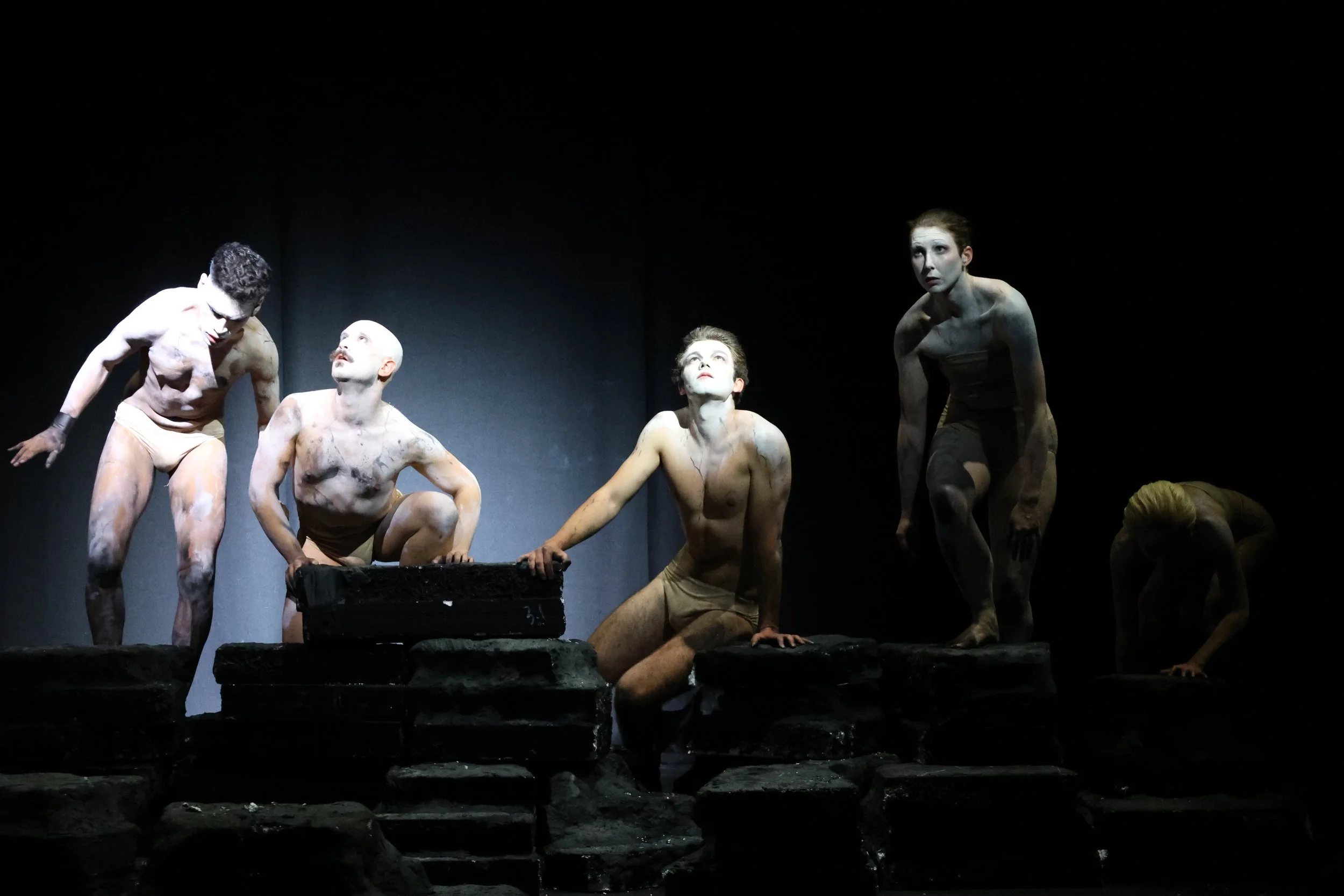 The performers’ bodies are approached as living archives. Each body carries traces of migration and labour, yet continually generates new perceptual records through the act of performance. Drawing upon the gestures and postures of manual work as movement prototypes, the piece develops an embodied form of archiving that materialises invisible histories through breath, friction and echo. The archive thus emerges not as a static document but as a dynamic negotiation between body and space.